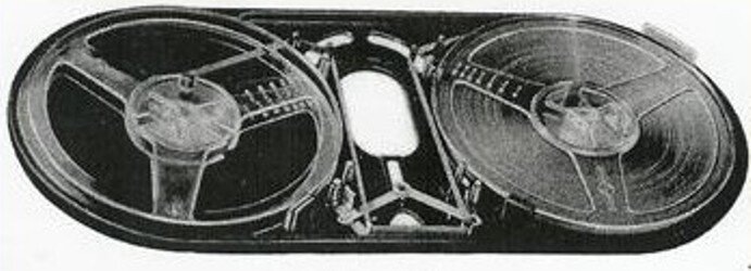 1. Первый кассетный магнитофон. К удивлению многих. это не детище фирмы Филипс. Первую магнитофонную кассету придумала фирма LOEWE в 1950 году. Выглядела она весьма необычно.