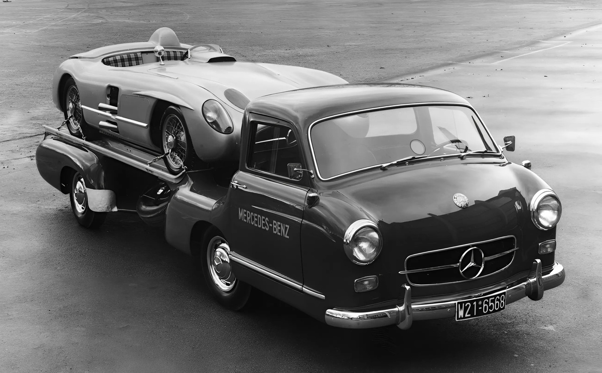 Однако на фоне изысканного W194 сопровождающий транспорт "мерседесовской" команды выглядел, мягко говоря, диссонансом. Грузовые машины, перевозившие гоночные болиды, производили впечатление не просто устаревших, а откровенно угрожающих — своеобразное тёмное пятно на безупречной репутации возрождающегося бренда.