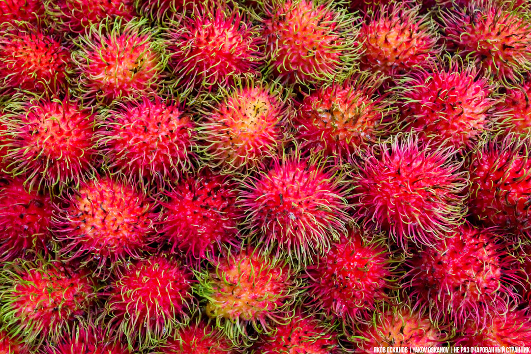 Привет, мои дорогие любители необычной земной природы. Сегодня у нас ботаническая рубрика, которая посвящена замечательному фрукту, который в отличие от манго, мангустинов или личи, не особо появляется в наших магазинах. Называется этот фрукт, да и само растение - рамбутан (Nephelium lappaceum), и выглядит он, согласитесь эффектно. Плоды похожи на красных морских ежей, с зелёными иголками. Рамбутан - древовидное растение, которое относится к семейство сапиндовых, тому самому, что подарило миру личи, испанский лайм, лонган, гуарану. Ну, это оно миру в тропической зоне подарило. Северным странам и России в том числе от сапиндовых достался несъедобный конский каштан. Но спасибо хотя бы за это: по крайней мере парки украшает и медонос хороший. Но вернёмся к рамбутанам. В отличие от конских каштанов цветы рамбутана не столь красивы. Зато плоды выглядят очень нарядно. Родина рамбутана – Малайзия и Индонезия. В переводе с малайского он называется "волосатик", что вполне соответствует его вне