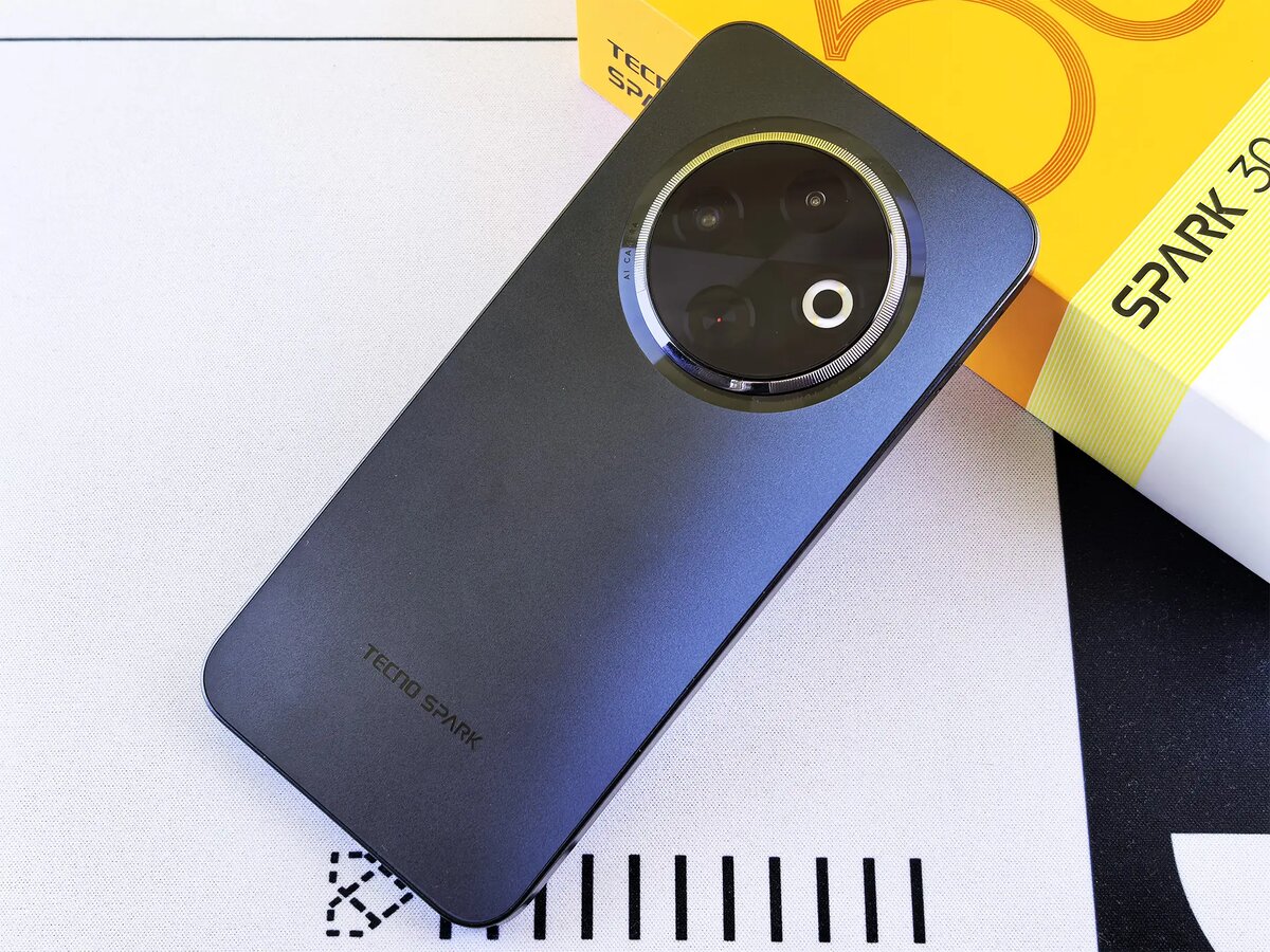 Дизайн — одна из сильных сторон смартфона. Внешне TECNO SPARK 30C похож на более дорогие модели из линейки Camon 30. Матовый пластиковый корпус с еле заметным напылением переливается при дневном свете.