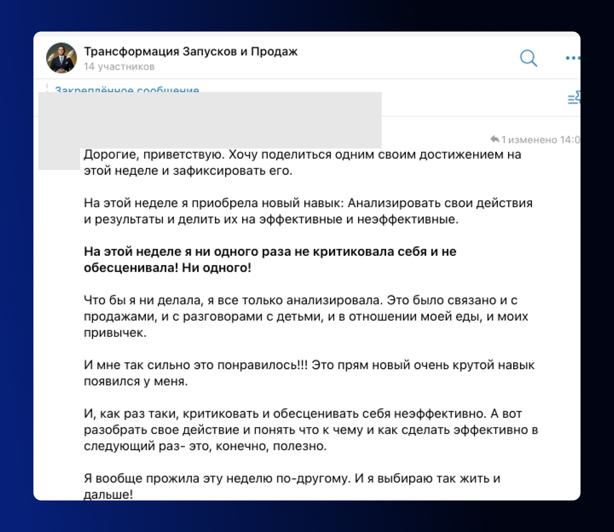 Мы продолжаем погружаться в историю трансформации от алкогольной саморазрушающей программы до успешного бизнеса. Первая часть здесь Вторая – по этой ссылке А вот и третья подоспела… Алкоголь, принимаемый стабильно, уверенно и без прогулов на протяжении последних 4-х месяцев (работу можно прогулять, но алкоголь нет…), буквально размазывал мою клиентку. Пришлось ее “закодировать”, это уже было не так сложно, важнее было понять, что именно заменял алкоголь? - Так как цель не мотивировала и т.д. А что же тогда? Начали отрабатывать эту ситуацию и докопались (дальше расскажу о причине)! С надеждой на трансформацию, в итоге была поставлена задача и, слава Богу, результат не заставил себя ждать. Ну, а следом примчалась самая долгожданная весть. Но помня предыдущие качели, я уже не расслаблялся и держал руку на пульсе, так как знаю, что если человек повторит результат минимум 3 раза подряд, значит навык сформирован, вообщем ждал подтверждение того, что сработал именно тот ключик, который мы на