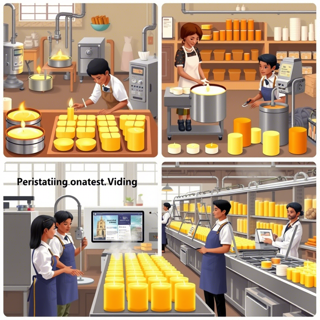 🔹 Автоматические линии – позволяют выпускать тысячи свечей в сутки.