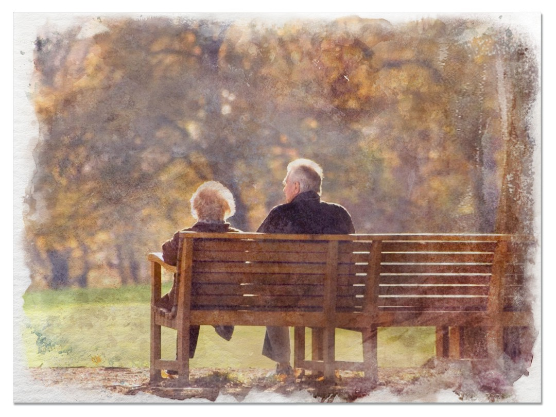 Они сидели на старой деревянной скамейке в парке, где когда-то гуляли молодыми. Листья под ногами шуршали, будто напоминая о том, сколько лет уже прошло. Он, с седыми висками и морщинами у глаз, держал её руку — такую же морщинистую, но всё такую же тёплую и родную. Она улыбнулась, глядя на него, и произнесла: