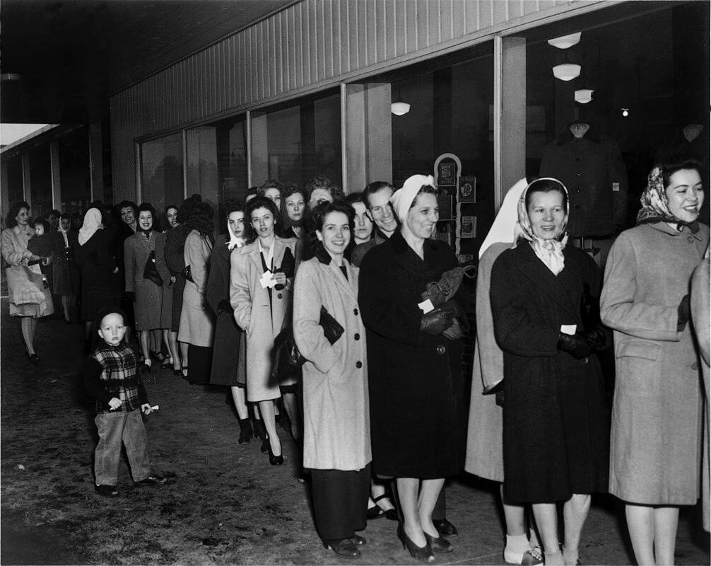 Из недавнего вспоминается завирусившийся в соцсетях ролик, где толпы покупателей буквально выдавливают двери, чтобы первыми урвать новую модель iPhone марки Apple, видимо для того, чтобы первыми "запилить" рилс о покупке и сорвать шквал лайков. Да, реалии современного мира таковы. Но еще 80 лет точно такие же давки можно было наблюдать от охотников за другим не менее желанным товаром, но среди ждущих в очередях стояли только женщины. Нейлоновые бунты 1945-1946 годов – яркий пример того, как социальные и экономические факторы, вкупе с дефицитом востребованного товара, могут привести к массовым беспорядкам. В отличие от современных давок в магазинах одежды во время «Черной пятницы», нейлоновые бунты были схожи с ажиотажем вокруг продаж нового айфона - отражали жажду обладания предметом роскоши, ставшим символом женственности и элегантности послевоенной Америки. Нейлоновые чулки появились в свободной продаже в 1940 году, и благодаря своей прочности и эластичности, в отличие от шелковых ч