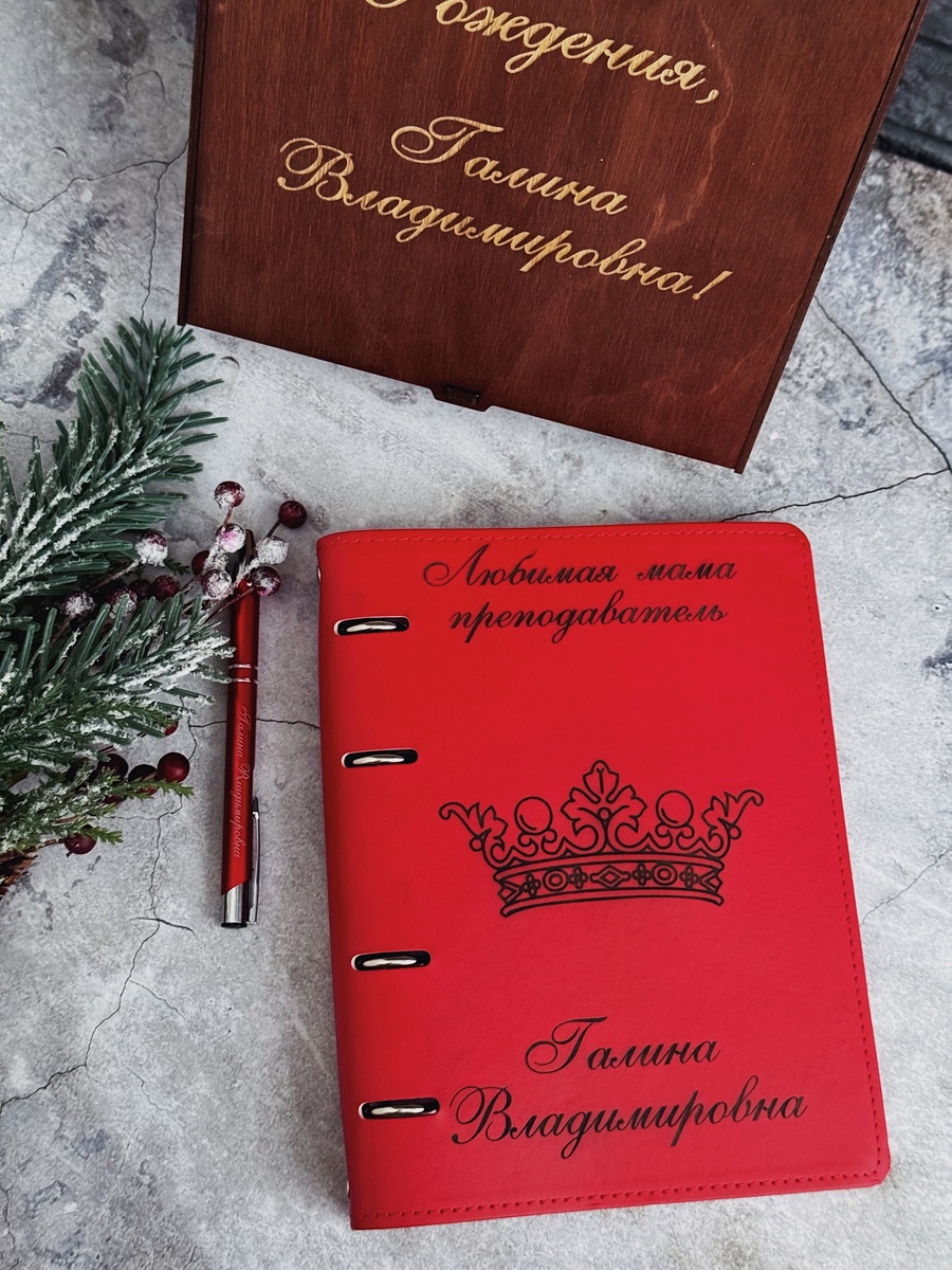 Блокнот на кольцах на заказ с гравировкой имени и ручка🔥 ⚡️ГРАВИРОВКА уже включены в стоимость ⚡️Экокожа, формат а5, листы в клеточку, сменный блок ⚡️Цвет можно выбрать 🔥 В наличии есть варианты как для женщин, так и для мужчин ⚡️Деревянная коробочка с гравировкой ⚡️Изготовление от 1 дня 🚀 ⚡️ДОСТАВКА ПО ВСЕЙ РОССИИ Блокнот с гравировкой - универсальный и полезный аксессуар для любого человека. Каждый день блокнот должен быть под рукой, чтобы записать важные мысли, новые идеи, планы. Отлично подойдёт к любому празднику, будь то День рождения, Юбилей, 8 марта, 23 февраля, Новый Год или профессиональный праздник 👍