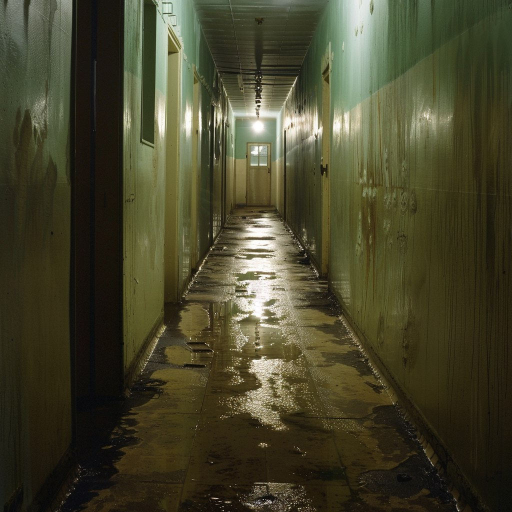 Мокрые следы вели Артема по длинному коридору, освещенному тусклым светом редких лампочек. Каждый его шаг отдавался эхом, будто санаторий был живым существом, наблюдающим за ним. Шепот, который он слышал, стал тише, но не исчез совсем. Он звучал как навязчивый звон в ушах, заставляя сердце биться чаще. Предыдущая часть