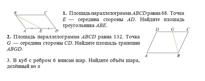 Реши задачу: площадь параллелограмма, треугольника и трапеции И шар, вписанный в куб