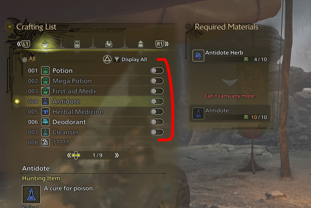 Гайд: Как отключить автоматический крафтинг предметов в Monster Hunter Wilds