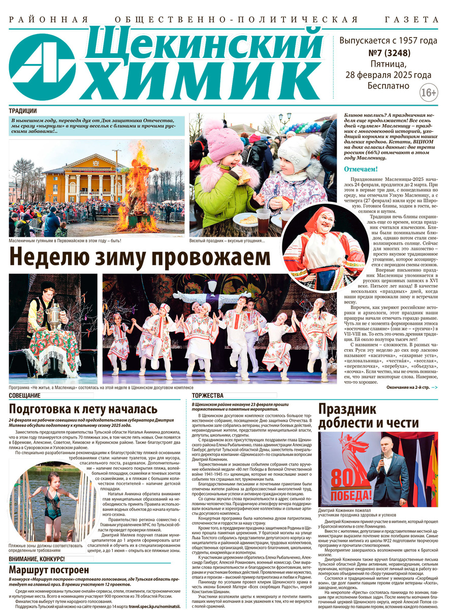 Сейчас и мы прольем свет на важные события завершающейся рабочей недели. Встречайте «Щекинский химик», издание трудового коллектива «Щекиноазота» и Щекинского района!