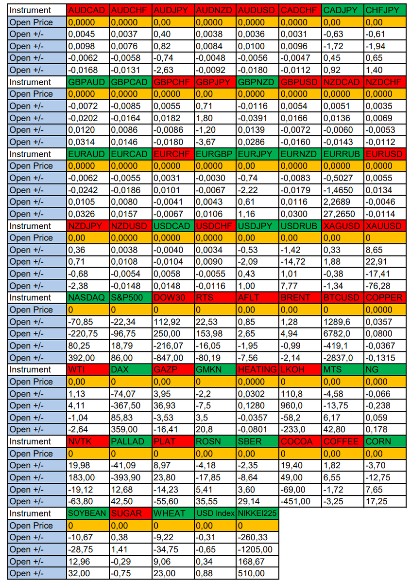 Здравствуйте Уважаемые трейдеры! Александр Борских подготовил для Вас свежую информацию. Очередные сезонные тенденции на Пятницу 28 Февраля 2025 по основным мажорам финансовых рынков. Весь перечень анализируемых активов указан ниже в общем количестве 61 инструмента. Здесь Вы найдете активы рынка Форекс, популярные активы Московской биржи, не менее популярные активы Чикагской биржи СМЕ и мажор криптовалютного сегмента - Биткоин, за которым следуют все альткоины. Первый блок информации с зонами лимитных покупок и продаж. Данная информация включает в себя не только статистический показатель волатильности каждого актива, но и ближайшие опционные страйки с учетом премий за риск (Для верных расчетов рекомендуется просмотреть теоретическое видео в свободном доступе - Как использовать блок сезонности). А теперь сам блок информации №1: Второй блок информации с направленным вектором движения и вероятностями (внимательно обращаем внимание на цену открытия каждого актива. Обязательно для верных ра