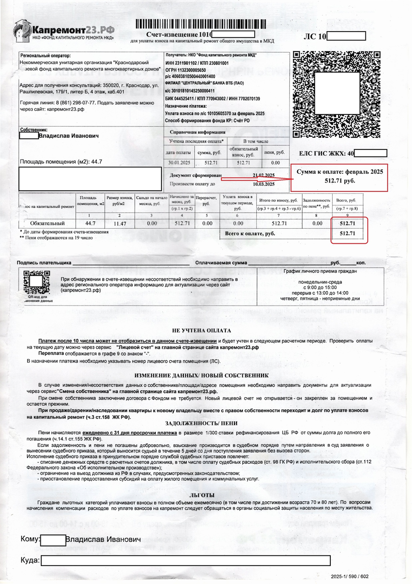 Вчера я получил в почтовом ящике счёт - квитанцию для уплаты взносов на капитальный ремонт общего имущества в МКД.