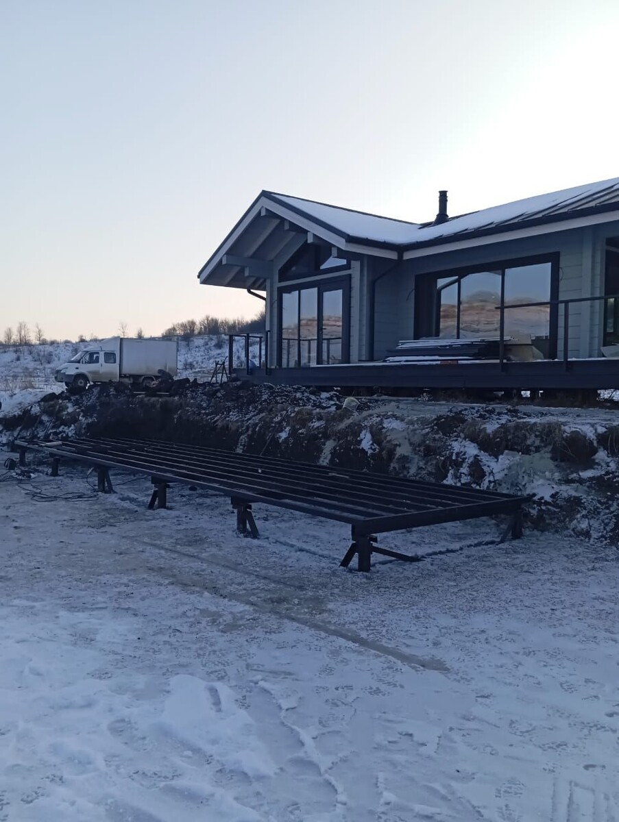 Закрутили 12 винтовых свай диаметром 108 мм и длиной 3 м, с дополнительным наращиванием для достижения необходимой глубины.