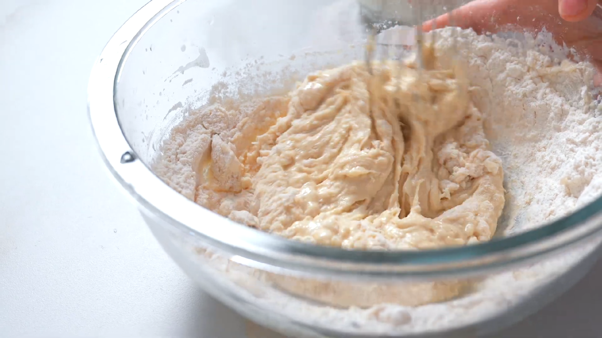 ✔️ Не вливайте все молоко сразу – добавляйте его постепенно, чтобы легче было замешивать тесто.