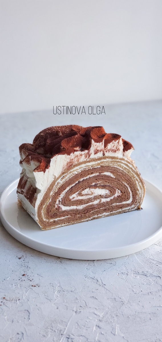 Блинный торт Тирамису☕️🍫 Ганаш: 75гр - Шоколад 54% 75гр- Молочный шоколад 90гр - Сливки 33-35 % 45гр - Сливочное масло ( мягкое) Паста кофе или растворимый кофе ( опционно) Коньяк, Бренди, ликёр Бейлис - опционно Сливки довести до кипения, добавить кофе, вылить на шоколад, пробить блендером, добавить алкоголь и мягкое сливочное масло, снова пробить блендером, накрыть пленкой в контакт и оставить при комнатной t на стабилизацию 1.5-2 часа. Тесто для блинчиков: 2шт - Яйца 1ст.л - Сахара 1/2 ч.л - Соли 300гр - Молока 200гр - Муки 30гр - (3ст.л) растит масла 300мл - кипятка + кофе растворимый 2-3 ч.л (на ваш вкус) В молоко добавить яйца, соль,сахар, взбить, добавить муку, все хорошо взбить венчиком. В кипяток добавить кофе и влить в тесто, далее добавить растительное масло. Выпечь блинчики, у меня получилось 15шт. Крем с маскарпоне: 250гр - Маскарпоне