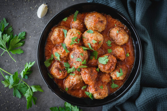 Дети обычно в восторге от тефтелей с рисом в томатном соусе. Эти мясные шарики такие мягкие, что их не нужно долго и тщательно пережёвывать. Взрослые тоже не против такого блюда, ведь оно напоминает им о вкусных домашних обедах. рис – 100 гр фар свиной (можно свино говяжий) на ваш вкус - 600гр репчатый лук – 2 шт морковь - 2 шт петрушка – 1 веточка растительное масло – 3–4 ст. л. томатная паста – 3 ст. л. Специи, соль по вкусу Общее время приготовления: 1 ч. Шаг 1: Залейте рис кипятком и пусть постоит минут 15-20, можно конечно отварить до полуготовности, но я просто заливаю кипятком этого достаточно, так как потом ой дойдет в тефтелях. Шаг 2: Пока рис настаивается, нарежьте мелко лук и натрите морковь на крупной терке, далее обжарьте лук до золотистого цвета и добавьте морковь, все это обжарьте до готовности, заправьте томатной пастой разведенной в теплой воде и томите минут 5. Шаг 3: Соедините в миске мясо, рис, соль и специи. Тщательно вымесите фарш. Сформуйте из него небольшие т