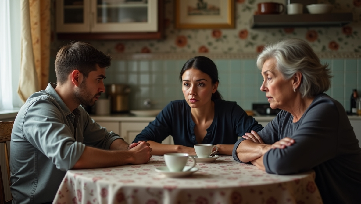 Он прошёл в комнату, бросил сумку на стул. Радмила стояла у окна, явно нервничала, а Галина Петровна, сверкая глазами, сидела за столом с чашкой чая и выглядела весьма возмущённой.
