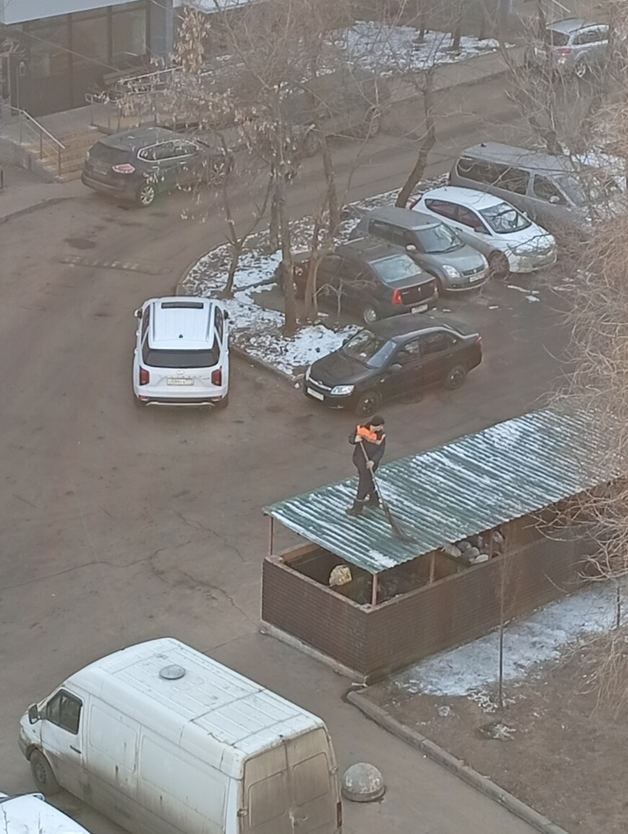 Ӟечбур! Услышав непонятный скрежет, выглянув из окна увидел чудную картину как дворник подметает крышу домика помоек. Но не суть, и тут посетила мысль. А знаешь Лись, есть у меня одно маленькое пожелание. А может быть и не пожелание а на уровне требования, да так что пятки сводит. Девушка удивилась столь странному началу расговора но, все таки спросила. Излагай коварный план, злой гений. И тут Котик начал излагать. Смотри, я увидел мужика на метле на крыше домика помоек. А теперь я хочу чтобы когда я просыпаюсь, он там каждый день стоял. Лисичка улыбнулась, беспощадно! А зачем тебе нужно чтобы там мужик с метлой стоял? Котик задумался, да я как-то не знаю, может чтобы он стоял и шкрябал метлой крышу? Лисичка задумалась, хотя нет. Конечно если бы он свою метлу испытывал как средство передвижения то можно каждый день стоять на крыше с метлой. Если его метла летательный аппарат например? Котик улыбнулся, можно и летательный. А вообще я, я хотел чтобы этот мужик просто стоял там и метло