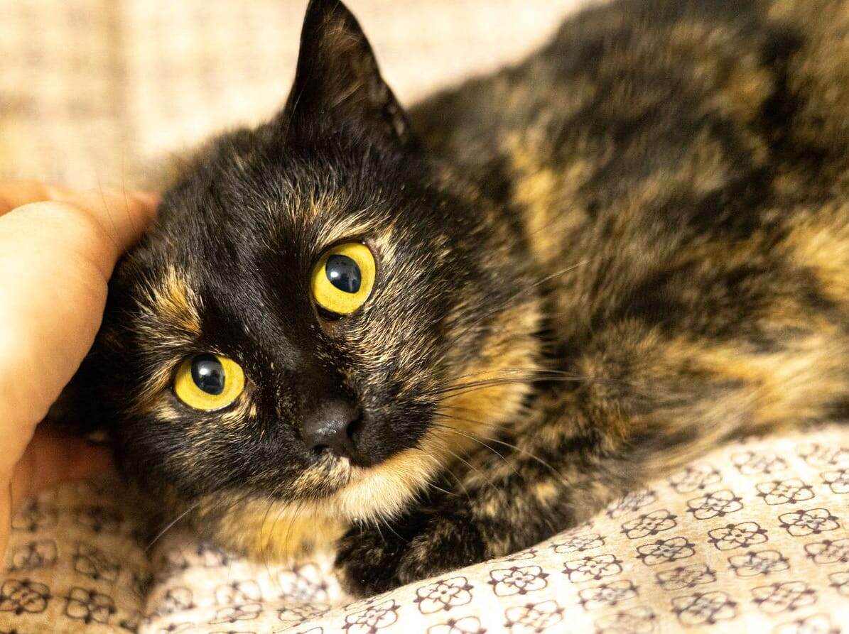 Чанни всего 7 месяцев. Она полностью обследована, здорова, теперь уже стерилизована. Целый месяц провела в стационаре, для проверки здоровья, адаптации, мониторинга после стерилизации. От всего обработана, в лоток ходит отлично, знает когтеточки.