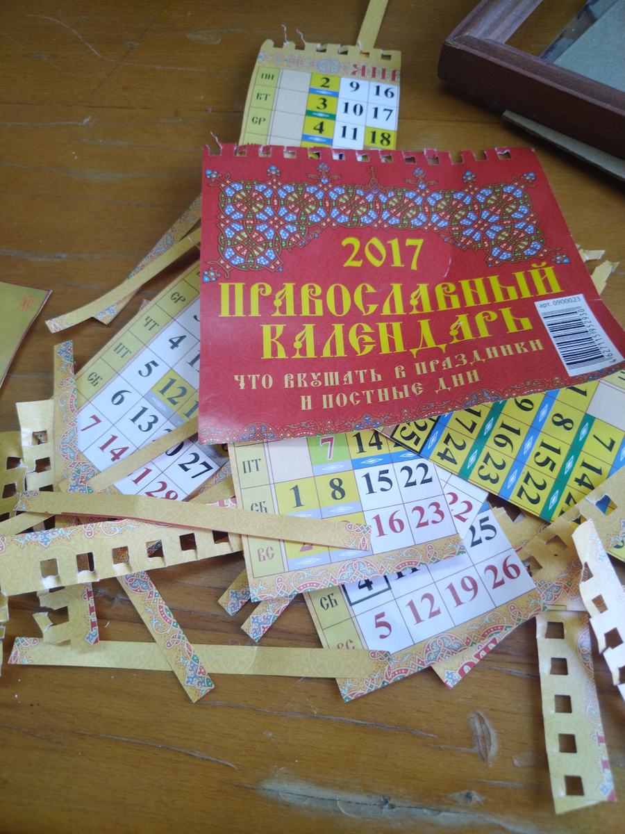 Если обычный календарь легко отправляется в ведро, то с изображением святых, так, само собой не поступают. В деревне или на даче обычно их сжигают в печи или как у нас, в камине. Что же делать с церковными календарями в городе? На самом деле горожане стараются не покупать такие печатные издания, но бывает что кто-то подарил. При православных храмах есть котельные, куда можно передать старенький календарь, газеты с православной тематикой и прочее. Их там аккуратненько сожгут. У нас в сельском доме всегда много календарей и православных с указанием постов и праздников, и простых "рабочих". Мне нужно чтобы перед глазами всегда был месяц в котором сейчас живу, чтобы планировать свою жизнь.)) В телефоне как-то не то.)) А сегодня случайно наткнулась на старый, настольный календарь с иконами.🤷♀️ Решила их аккуратно вырезать и сделать одну общую церковную композицию. Осталось купить рамку А4. У меня есть место куда определить спасенные от огня иконочки, не могу без видимой причины их пр
