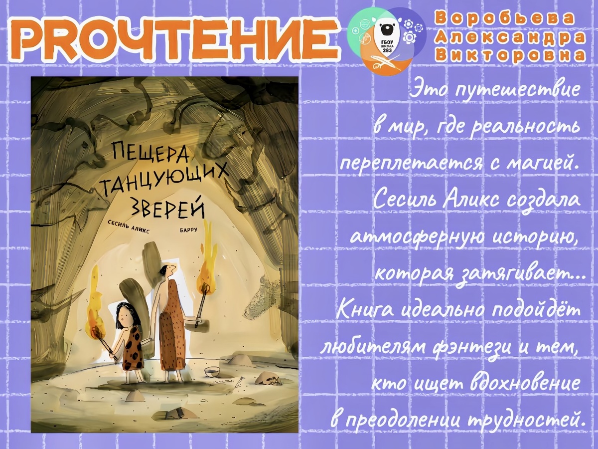 🙋🏻♀️ Традиционная авторская колонка от методиста нашей школы, журналиста с многолетним стажем, Александры Викторовны Воробьевой https://vk.com/sanechka78. ⛰️ 30 лет назад в 1994 году в долине реки Ардеш была случайно открыта пещера с настенной живописью времен палеолита, то есть примерно 36,5 тысяч лет назад! Около тысячи рисунков, примерно половина из которых – изображения животных. 🐾 А еще в пещере были обнаружены небольшие следы, которые могли принадлежать восьмилетнему ребенку. Он двигался осторожно и даже поскользнулся на влажной глине... ⁉️ Не кажется ли вам, что это начало замечательной истории?! Истории о племени, которое поселилось на берегу Змеиной реки. Люди охотятся, ловят рыбу, строят хижины и покрывают их шкурами, шьют одежду из меха, проводят ритуалы и танцуют вокруг костра. 👦🏻 И только один человек в племени (его зовут Тайм) не охотится и не принимает участия в общем веселье. Он всегда задумчив и одинок, в отличие от своей младшей сестры – улыбчивой малы