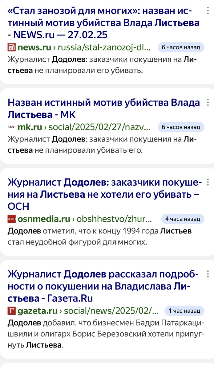 Дело в том, что Дмитрий Горин анонсировал на NEWS.RU интервью со мной, где я в сотый раз вспомнил свою беседу с чекистом Александром Литвиненко — «доверенным лицом» Березовского, которого числят причастным к покушению на Листьева: «Листьев проявлял излишнюю самостоятельность, стал задавать много вопросов. И тогда Патаркацишвили с Березовским решили припугнуть его и заодно на некоторое время вывести из игры. И задача заключалась в том, чтобы его ранили в подъезде. Однако наняли неграмотных исполнителей, как это часто бывает. Задание было просто вывести Владислава из игры, а не убивать. И когда прошла новость, что он убит, Березовский был напуган и огорчен, поскольку его кандидатура Влада в целом устраивала». «Листьев стал занозой в … для многих в конце 1994 года. После того как его назначили гендиректором ОРТ, он на общем собрании уволил половину сотрудников. Он заявил, что знает о коррупции, что теперь не будет странных премий, а будут только зарплаты. Поэтому на канале его тоже полови