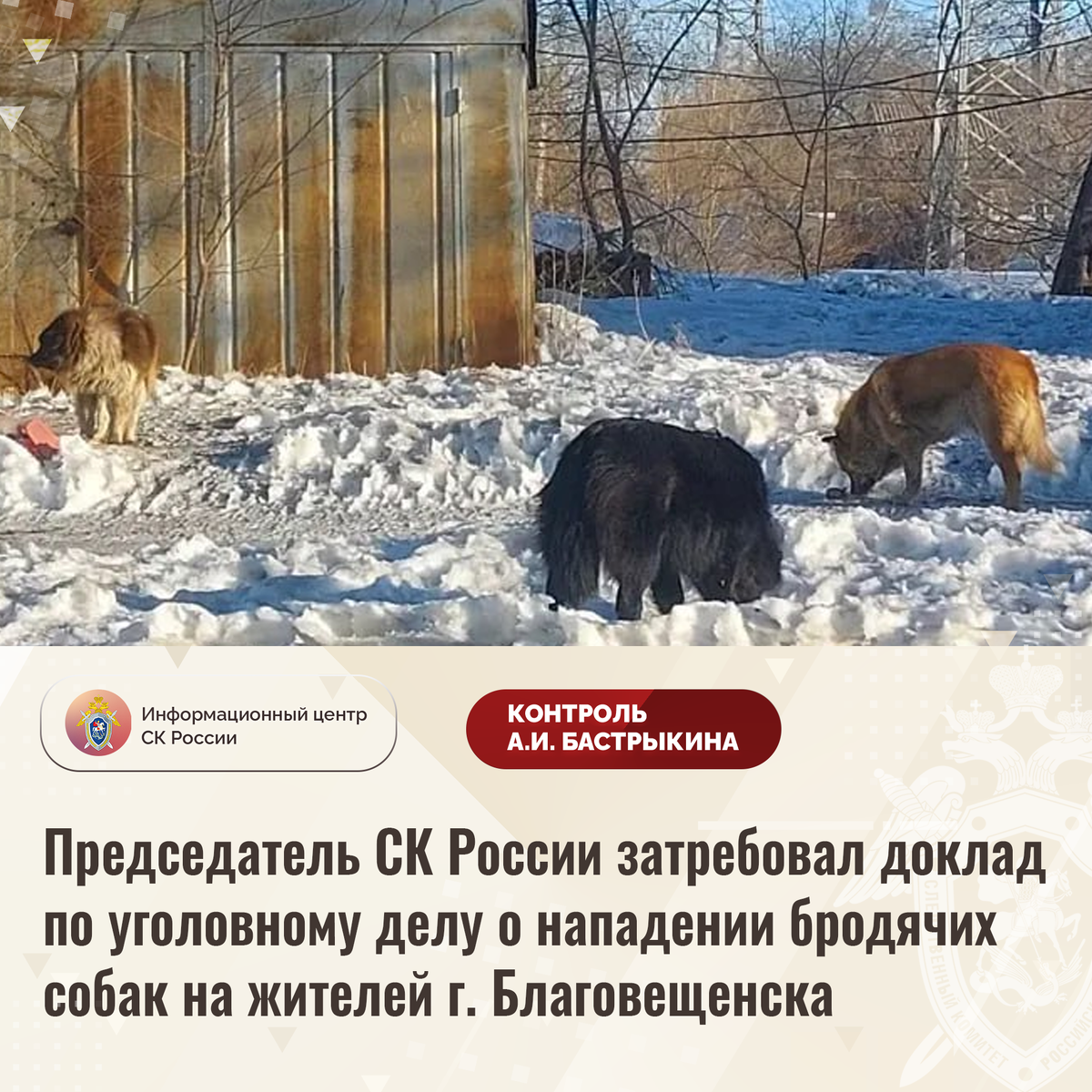 Председатель СК России затребовал доклад по уголовному делу о нападении бродячих собак на жителей г. Благовещенска