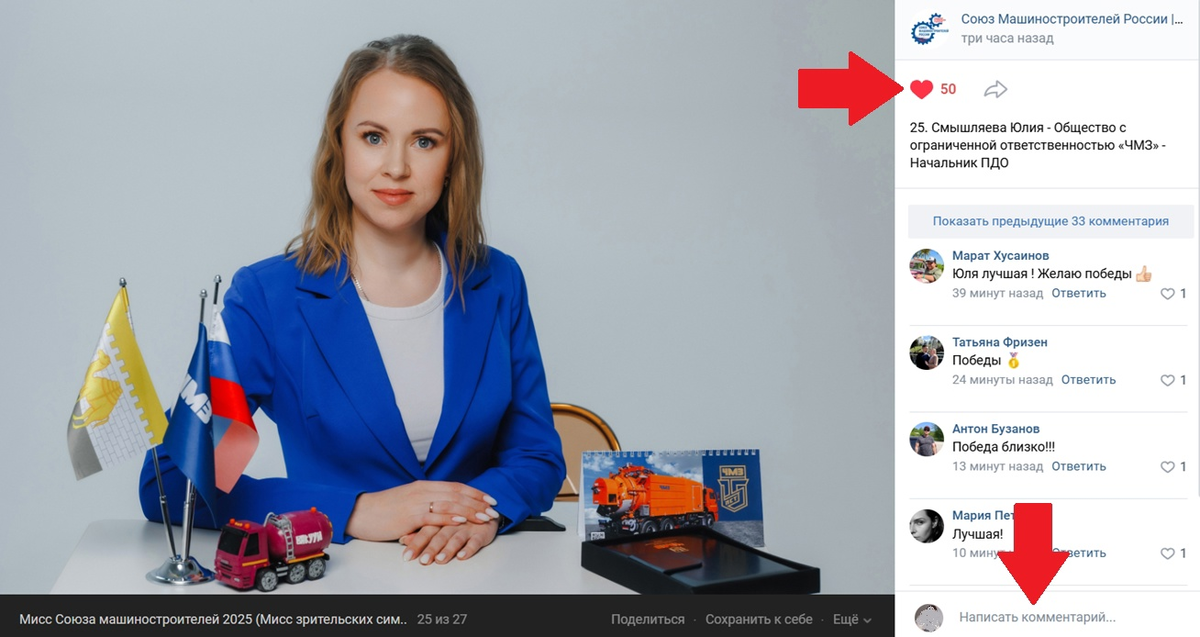 Призываем всех голосовать за нашу Юлию Смышляеву на конкурсе #миссСоюзмаш2025 по ссылке: https://vk.com/photo-102502751_457240923