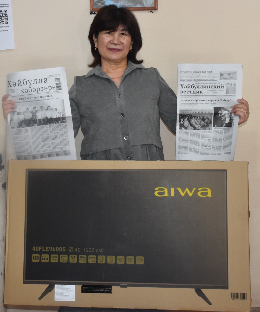 Жительница нашего района выписала газету «Хайбуллинский вестник» и одно республиканское издание, детский журнал «Акбузат» в соответствии с условиями республиканской акции «Подпишись и выиграй приз», и получила телевизор Зульфия Маратовна Васильченко знакома с районной газетой «Хайбуллинский вестник» с 1986 года, и с тех же пор ей сопутствует удача: семья Васильченко часто радуется регулярным призам. Зульфия Васильченко приехала в деревню Воздвиженка из Кугарчинского района работать по образованию учителем начальных классов, там же и познакомилась со своим мужем – Иваном Григорьевичем, который в то время работал бригадиром в местном совхозе. Они вместе с 1986 года и по сей день, и газету начали выписывать с того же года и до сих пор с ней не расстаются. У семьи Васильченко трое детей – Галина, Олег и Алёна, и шестеро внуков. Зульфия Маратовна говорит, что дети во многом научились читать, складывая буквы из вырезок газетных статьей, да и внуки интересуются, «что там происходит в районе».