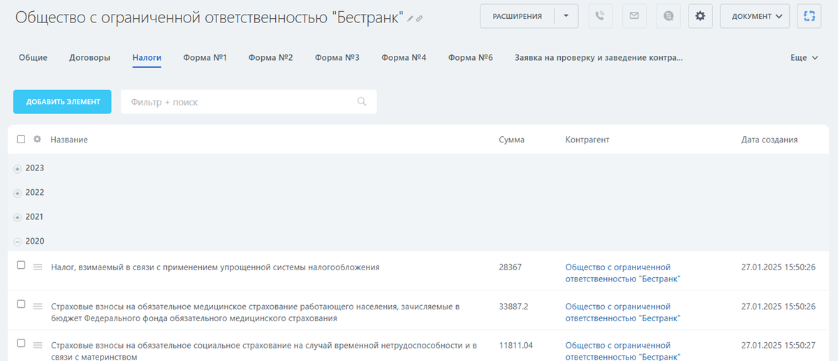 ✔ Настроили интеграцию с системой Контур.Фокус для автоматизированной проверки контрагентов, процесс проверки был встроен в существующий процесс согласования договоров. ✔ Реализовали также создание карточек контрагентов с проверкой на дубликаты и заполнение их данными из Контур.Фокус. 2. Была организована система шаблонов с управляющим бизнес-процессом, в которую можно добавлять новые сценарии, например, дополнительные запросы в Контур.Фокус или новый порядок работы с иностранными контрагентами без проверки в Контур.Фокус. Создано несколько бизнес-процессов Битрикс24, позволяющих запускать проверки как из согласования договоров, так и вне согласования для создания компании с контролем дубликатов и заполнением карточки данными Контур.Фокус. Перед отправкой запрос