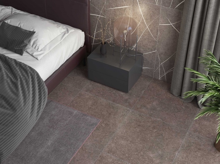 Выбор формата и размера покрытия зависит от комнаты. В просторных помещениях укладывайте более крупные полотна размером не менее 60х60 или 60х120 см. Также не забывайте, что чем меньше размер изделия, тем больше швов образуется между элементами, что визуально уменьшает пространство.