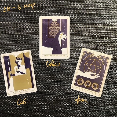 Раз в неделю я делаю себе прогноз на предстоящую неделю. Он простой, трехкарточный: основное событие, фон, совет. В конце недели сверяюсь с картами и оцениваю, как он сбылся. Подобная практика помогает лучше почувствовать колоду и найти новые значения привычных карт. На неделю 28 февраля – 6 марта 2022 мне выпал Король Жезлов, Туз пентаклей и 5 пентаклей. Если трактовать карты по позициям, то получается, что я буду иметь дело с каком-то мужчиной наделенным властью, фоново могут присутствовать приятные ситуации связанные с деньгами и подарками, а совет – быть скромнее и бережливее в плане денег. А если смотреть на карты как на историю, то получается, что мне придется за что-то заплатить, «дать взятку», попасть на деньги, и это принесет неприятные эмоции связанные с потерей денег. В истории будет замешан мужчина. В субботу я, как обычно, смотрю на эти карты и думаю: «Фигня какая-то, ничего подобного не происходило». А в воскресенье решила забрать из машины кое-какие вещи (машина запарко