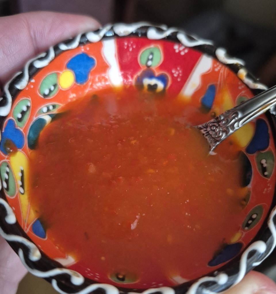 Конечно, его можно купить и в магазине, но свой всегда вкуснее! Да и готовится он не сложно, а главное быстро. Итак, перец чили и болгарский перец режем крупными кусками. Укладываем в кастрюлю. Чеснок чистим и также укладываем в кастрюлю. Готовим баночки для соуса: моем их, заливаем кипятком и затем перевернутыми ставим на полотенце. Добавляем к перцу и чесноку воду и все тщательно взбиваем блендером до получения однородной массы (конечно, небольшие кусочки все равно останутся, но это нестрашно). Далее в полученную массу добавляем сахарный песок, яблочный уксус, воду, соль. Все тщательно перемешиваем и ставим на плиту. Варим периодически помешивая и снимая пену до закипания, убавляем огонь до среднего, варим 3 - 5 минут и добавляем кукурузный крахмал, разбавленный водой. Постоянно мешая венчиком или столовой ложкой доводим до кипения, варим 3 минуты до загустения соуса (если образуется пена - снимаем ее). Плиту выключаем и при помощи половника разливаем наш соус по баночкам, закрывае