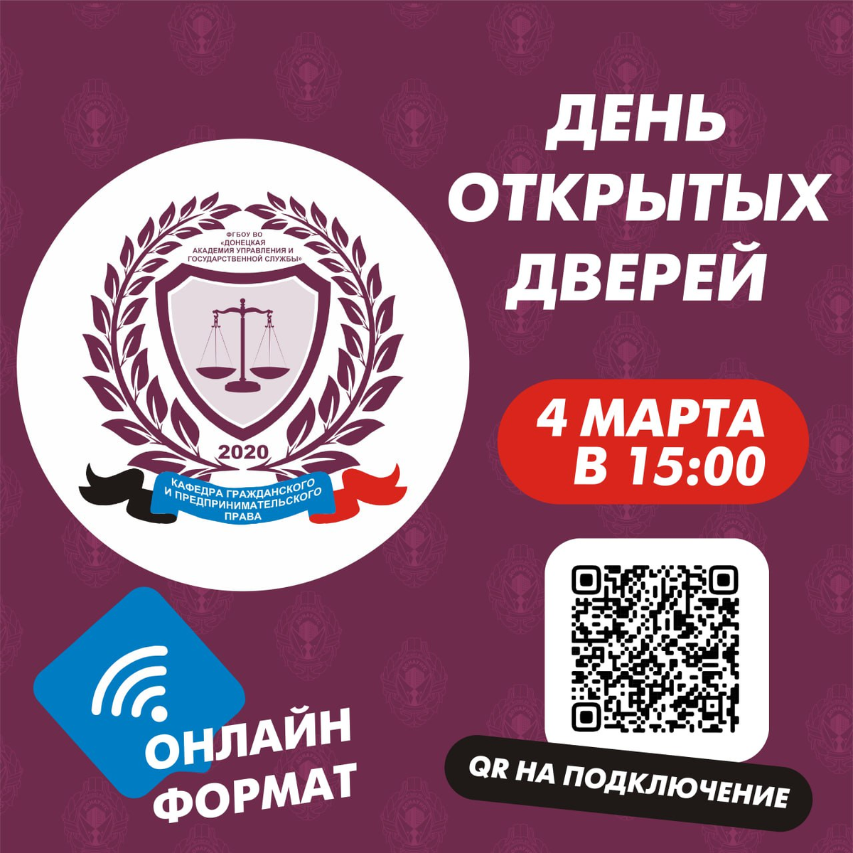 #деньоткрытыхдверей #ДОНАУИГС Приглашаем на день открытых дверей кафедры гражданского и предпринимательского права. У вас есть возможность узнать больше о нашей кафедре, задать вопросы преподавателям и получить ценную информацию о направлениях обучения и перспективах. ▫️ Вы получите актуальную информацию о направлениях подготовки кафедры. ▫️ Узнаете о возможностях трудоустройства и карьерного роста в сфере юриспруденции. ▫️ Ознакомитесь с правилами приема в ФГБОУ ВО "ДОНАУИГС". Мы уверены, что День открытых дверей станет для вас полезным и интересным событием! 💬 Присоединяйтесь по ссылке