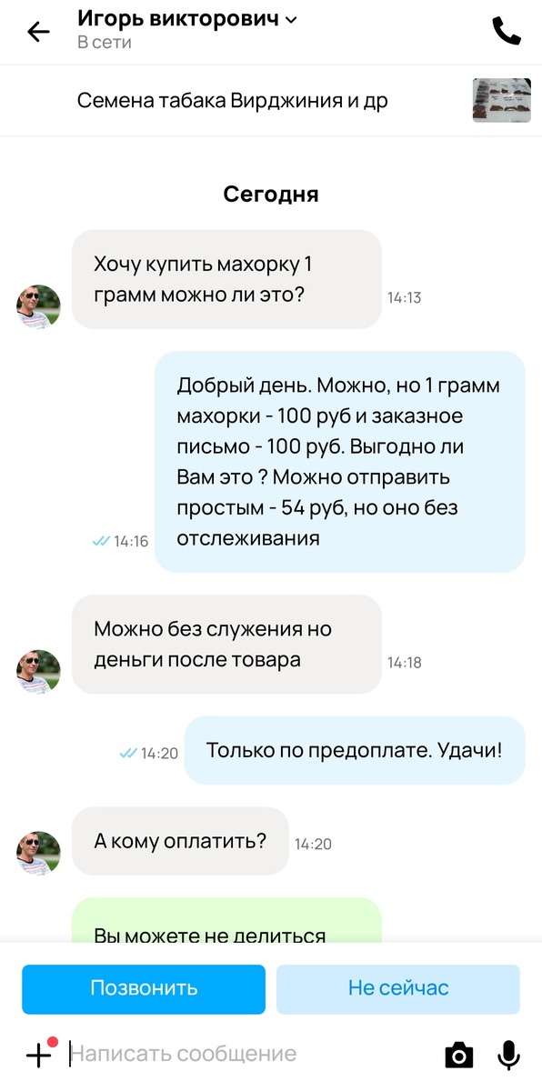 Не могу не поделиться сегодняшним торговым днëм на Авито:). Обычно всё более-менее адекватно, но сегодня целых два персонажа повеселили Первой была дама, которая хотела купить рассаду огурцов (!!!!!) с доставкой почтой (!!!!!!) в Выборг. Из Крыма. Почтой. Огурцы. Второй - вообще песня. Тут я не буду уж о том, что, конечно, 100 руб - тоже деньги, но маршрутка до почты - 60 руб и время потраченное, иногда и такие маленькие заказы берём, если отправка намечается общая. Но дальше ещё веселее: Напоминаю, цена вопроса - 154 рубля. Вообщем, " покупатель" влетел в чёрный список стремительно и навсегда. Наверняка будет, как наш крутой Дзен-блогер, рассказывать о том, какие люди стали недобрые и про буржуинов проклятых:)))