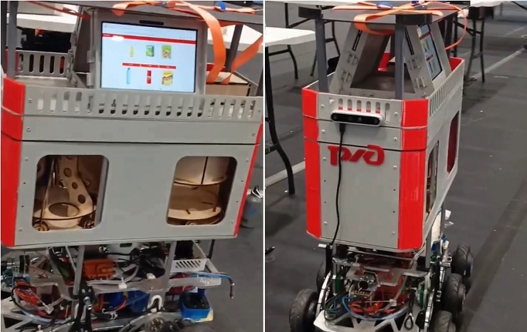 Робостюарда показали на первом Всероссийском конкурсе детских изобретений «Инженеры транспорта» в Екатеринбурге. Команда из Калининграда «Балтийские умельцы», робот может ориентироваться в пространстве без посторонней техники, передвигаться на неровной поверхности. На дисплее «стюарда» также отображается информация о выдаче заказа, прибытии поезда, изменении в расписании. Конкурс – совместный проект РЖД, министерства просвещения РФ и «Движения первых». Соревновательных направлений два: креативное и инженерное. Ребята пробуют себя в решении настоящих производственных задач, актуальных для транспортной отрасли, отметили в компании. Источник: РИА «Новости»