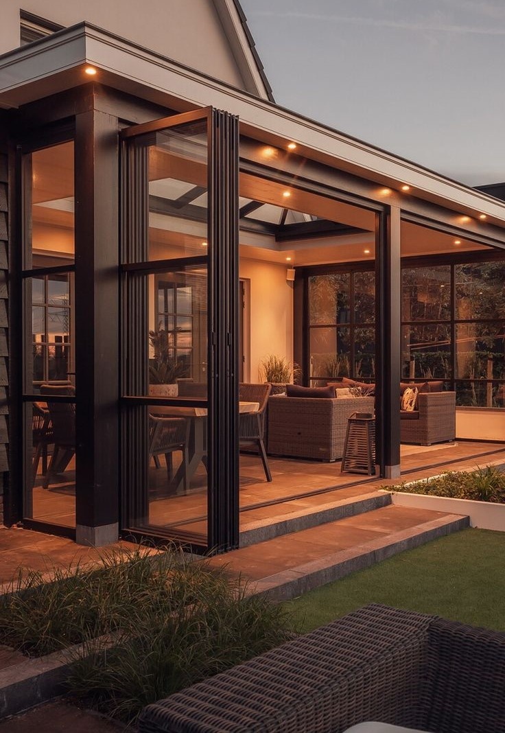 Плюсы: Защита от погодных условий, возможность использовать террасу в любое время года, увеличение жилой площади дома.
