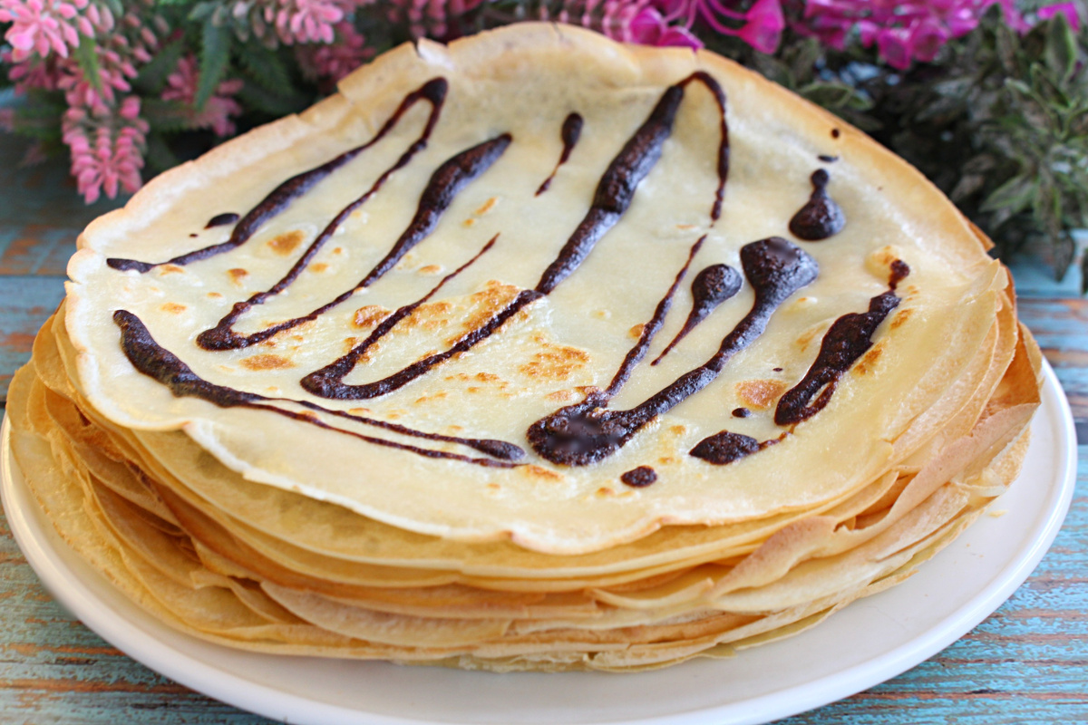 Эти блины порадуют вас своим внешним видом, шоколадные полоски делают блины необычными. Шоколадные полоски можно сделать очень тоненькие, а можно делать не полоски, а рисовать точки, сеточку и т.д. Я делала полоски просто выливая тесто столовой ложкой. Если же вы хотите тонкие изящные полоски, то вам понадобится кондитерский мешок. Перельем шоколадное тесто в мешок и будем делать любые узоры. Такие блинчики получаются ароматные, мягкие, тонкие и вкусные. Можно добавить в тесто ванильный сахар или ванильный экстракт. Молоко - 250 мл. Вода - 125 мл. Яйцо куриное - 2-3 шт. Масло растительное - 30 мл. Соль - 0.5 ч.л. Сахар - 2 ч.л. Мука - 150 г. Какао порошок - 1 ст.л. В чашку выложим сахар и соль. Количество сахара можно увеличить. Вбиваем в чашку яйца и перемешиваем. Я использовала два крупных яйца, можно взять три мелких куриных яйца. Вливаем в чашку молоко и воду, перемешиваем. Добавляем в чашку муку, перемешиваем и оставляем тесто постоять минут 15. Затем вливаем в чашку масло, переме