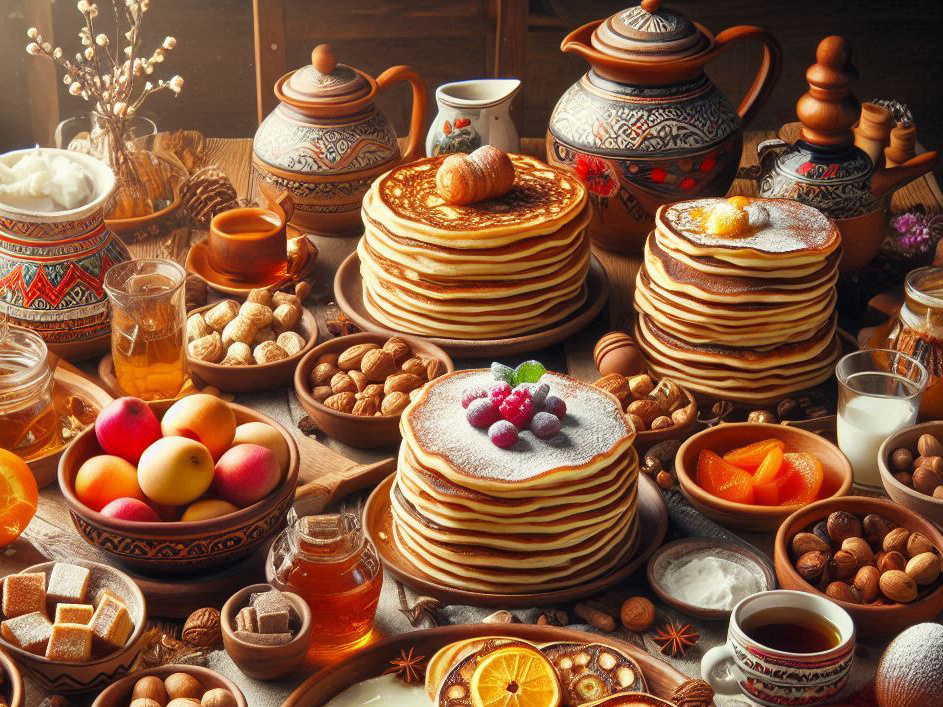Уважаемый преподаватель и известный публицист Тит Иванович сегодня принимал гостей. Напротив него в потрёпанном, но весьма удобном ГДР-овском кресле сидел его коллега, недавно прибывший в университет на должность преподавателя иностранных языков — Петр Евграфович. Стол в гостиной, где они расположились, пестрил блюдами с разными вариациями блинов, как тех, что с припеком, так и простых, в которые предлагалось собственноручно завернуть желаемую начинку. Шел первый день Масленицы. — Угощайтесь, дорогой друг, ешьте все без малейшего стеснения — сказал Тит Иванович, призывая начать трапезу. Петр Евграфович смотрел с огромным аппетитом на угощения, как молодой преподаватель, в отличии от хозяина дома, он не мог позволить себе такой роскошный стол и был несказанно рад шикарному приему. — Ваша супруга, Тит Иванович, просто кудесница — сказал гость, накладывая себе в тарелку блины с грибами. — Да, блины она у меня печет отменно, по особому семейному рецепту — после счастливый семьянин ловко св