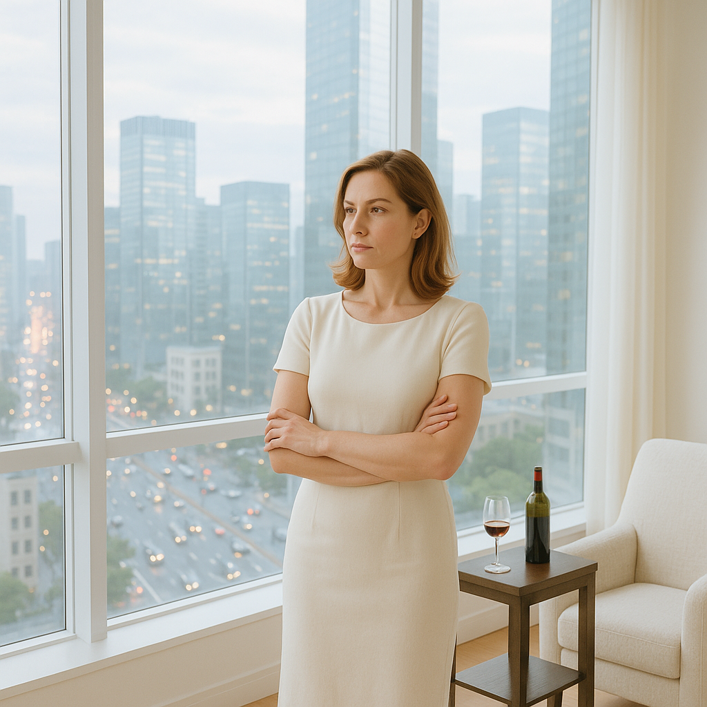 Ирина стояла у окна своей просторной квартиры, глядя на вечерний город. Свет фонарей отражался в окнах небоскребов, создавая иллюзию бесконечного пространства. За окном шумел мегаполис — машины мчались по улицам, люди спешили домой после рабочего дня. Но внутри квартиры царила тишина, нарушаемая лишь тихим шелестом кондиционера.