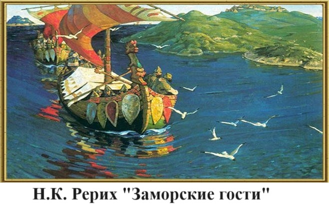 Итак, по совету Гостомысла в 862 г.н.э. в Россию были приглашены княжить его внуки от дочери: три брата-варяга: Рюрик, Синеус и Трувор. По официальной истории Рюрик стал править сначала в Новгороде, потом его родственник Олег захватил Киев, остальные братья по летописи - в Изборске и Белозере. Два брата вскоре умерли, и всё перешло во владение к Рюрику. Академик Б.А. Рыбаков поддерживал идею немецких историографов-фальсификаторов о том, что Рюрик был шведом, но оспаривал реальность существования братьев Рюрика, поскольку их имена, якобы, переводятся со шведского языка, как "родственники" и "верная дружина". "Тру вор" в переводе со шведского языка, якобы, означает "верная дружина". То есть, по версии академика Б.А. Рыбакова летописец многими веками позже описываемых событий по письменным источникам, по-видимому, не смог правильно перевести шведский оригинал текста договора о том, что был приглашён княжить Рюрик с родственниками и верной дружиной, приняв два последних слова за имена братьев. Однако в книге к.и.н. Л.Р. Прозорова «Святослав» (можно найти в Интернет, например, по адресу: http://lib.rus.ec/b/111248 ), автор не соглашается с предположением Б.А. Рыбакова и убедительно это обосновывает. Во-первых, «var» на шведском языке это «обет, клятва», а не «дружина» («трувар» на языках германской группы, это «верная клятва»). Во-вторых, «sine huse», послужившее по версии Б.А. Рыбакова основой для вполне русского Синеус, на шведском означает «их дома» (см. Гугол-переводчик). В третьих, согласно древним письменным преданиям, Рюрик прибыл не из Швеции, а из Пруссии. К шведам он отношения не имел. Поэтому толкования Б.А. Рыбакова выглядят весьма произвольными и натянутыми фантазиями. Русское Синеус вызывает сомнение в том плане, что синих усов не бывает. Тем не менее, это вполне реальное имя, точнее прозвище, отражающее отличительный признак данного индивида. Есть такой цвет волос – иссиня чёрный. Это глубокий чёрный цвет с синим отливом. Встречается довольно редко, поэтому и послужил поводом для прозвища. Сказать про такого человека, что он черноусый – ни чего не сказать. Черноусых много. Сказать, что он иссиня черноусый – длинно. Поэтому говорили просто синеусый или синеволосый. Знаменитый герцог Синяя Борода имел не синюю бороду. Это противоречило бы человеческой природе. Он имел иссиня чёрную бороду, чем и выделялся среди остальных. В «Будинском изборнике» всё изложено несколько иначе. Рюрик пришёл со всеми своими родственниками, слугами, охраной в количестве около 1000 человек. Хотя Гостомысл и планировал отдать ему власть в Новгороде, но ни кто этого добровольно делать не собирался. Рюрик поселился в Ладоге, а в Новгороде правил князь Вадимир. В это время пришли в Новгород некие волхвы и стали говорить, что от этого Рюрика будет много бед на Руси (и не ошиблись). Они призвали Вадимира прогнать его опять за море в город Меклен, откуда он был призван из полабского племени ободритов. Сил, чтобы сопротивляться Вадимиру у Рюрика было недостаточно. Тогда он призвал в союзники тех самых норманнов, которые незадолго до этого приходили мстить за смерть ярла Гунульфа. На этот раз норманны пришли не в виде завоевателей, а уже, как бы, вместе с приглашённым Рюриком, в качестве его наёмной дружины. Норманны устроили князю Вадимиру засаду, и убили его. Рюрик приступом взял Новгород и 