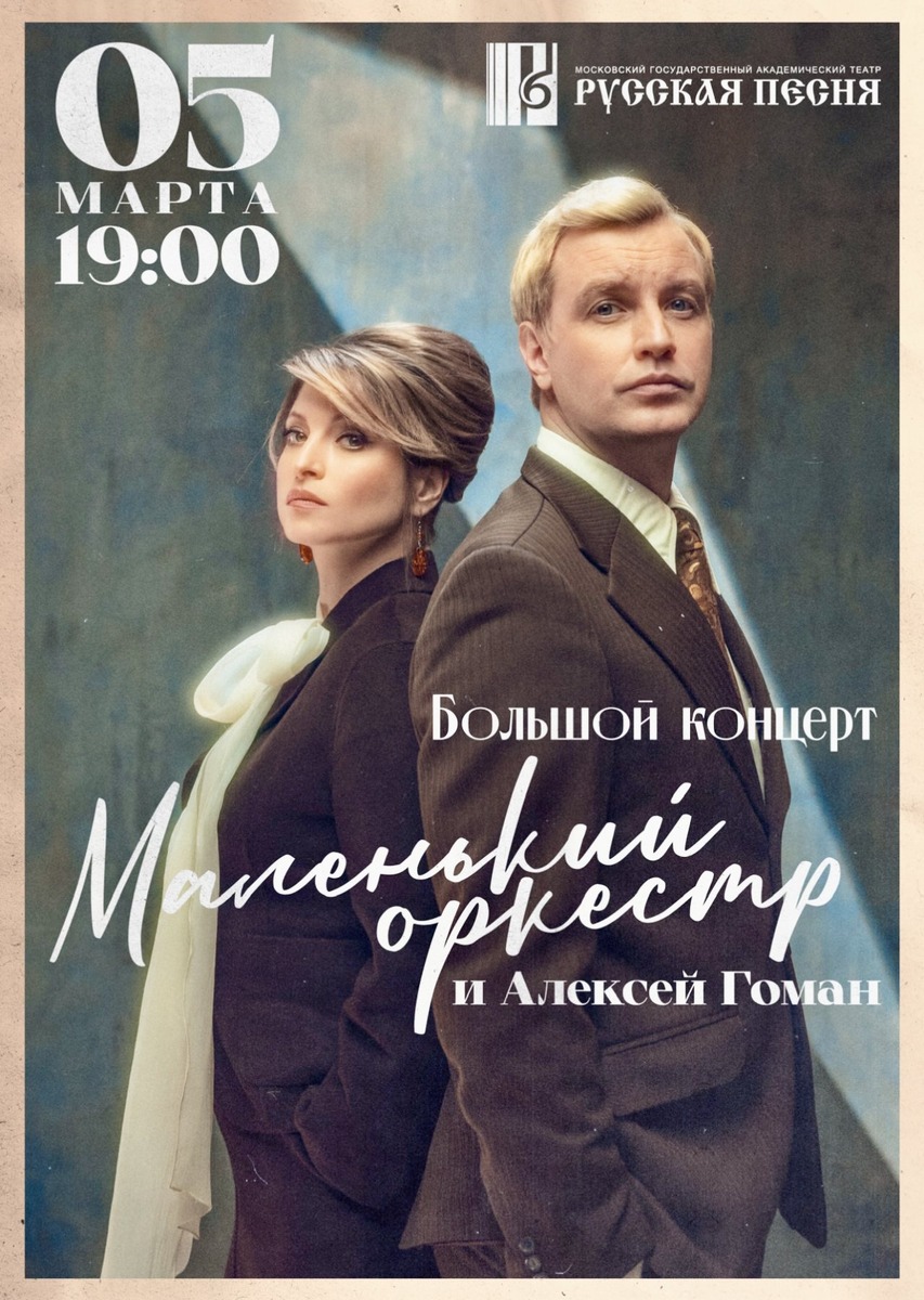 Мы всегда мечтали играть концерты в театрах, поскольку наша музыка нуждается в близком контакте со зрителем, но и акустически требует широты и глубины звука. Такое возможно только в театре. В эпоху упрощения нам очень захотелось усложнить себе задачу и незаметно сделать с Маленьким Оркестром — самый что ни на есть Большой концерт в честь главного праздника Весны. В программе прозвучат все авторские песни коллектива, а также самые любимые произведения времён оттепели и советской эстрады. Не обойдётся и без премьер. Если такие имена как М. Таривердиев, Э. Артемьев, А. Зацепин, Е. Крылатов вам хорошо знакомы и любимы, то наш концерт станет для вас приятным открытием.» Солист Маленького Оркестра — Алексей Гоман, победитель тв-конкурса «Народный артист», автор песен, актёр. Музыкальный руководитель коллектива — Валерия Коган, композитор, экс-участница ВИА Татьяна, вокалистка, режиссер. Дирижер и музыкальный директор коллектива — Александр Махнёв. Идея и воплощение — Саша Даль, художественны