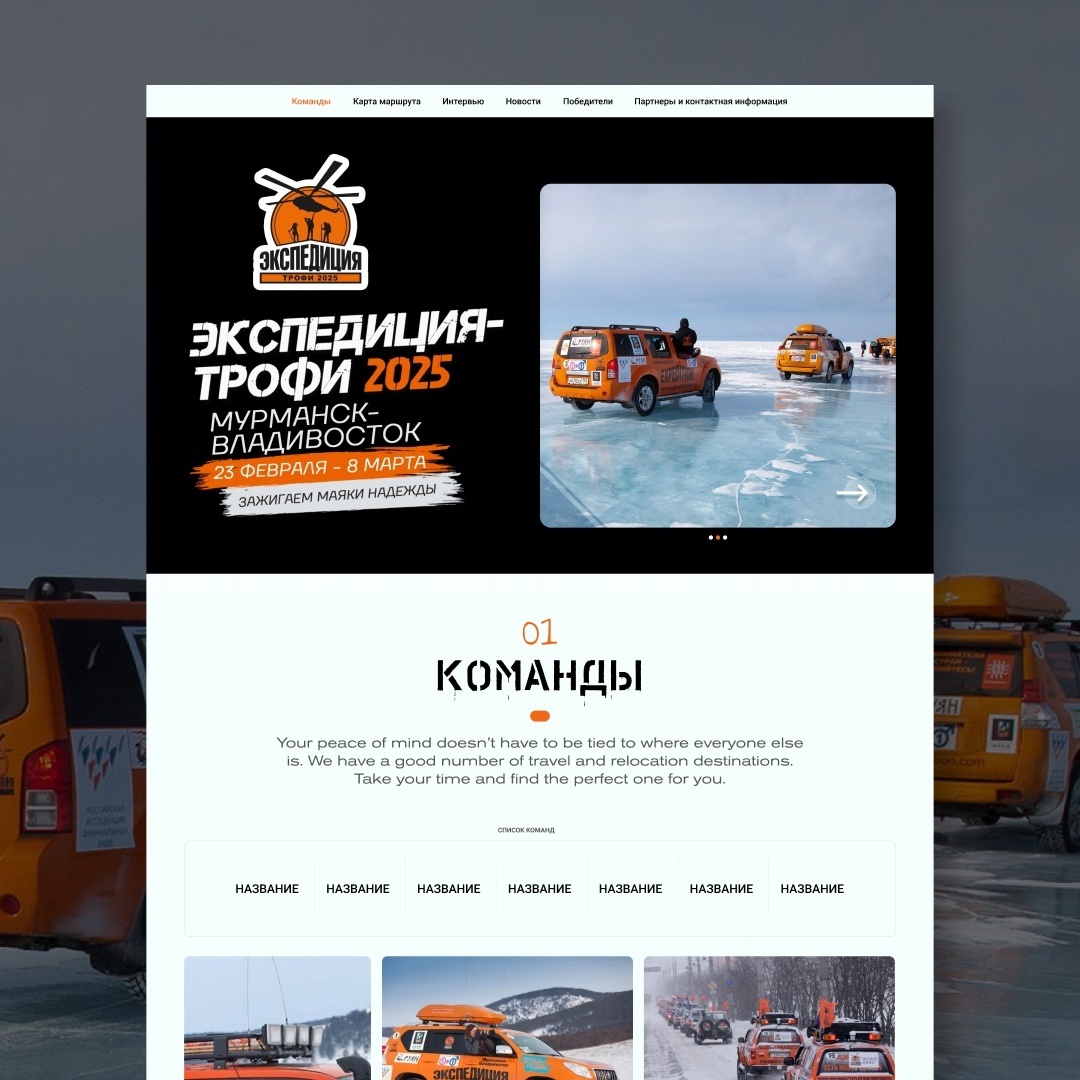 Новый кейс: лендинг для легендарной гонки «Экспедиция-Трофи 2025»! 🚀 «Экспедиция-Трофи» – это не просто гонка, это трансконтинентальный автопробег-соревнование с элементами экстремального бездорожья. Для такого масштабного события требовался соответствующий лендинг, и мы с гордостью представляем результат нашей работы! ✅ Сайт выполнен в строгом соответствии с брендбуком «Экспедиции-Трофи», с использованием фирменных цветов и элементов. 🎨 ✅ Мы постарались максимально отразить дух приключений и экстрима, который царит на гонке. 🌍💥 ✅ Удобная навигация и понятная структура помогут пользователям быстро найти всю необходимую информацию о мероприятии. 🧭📱 Оцените наш новый проект в комментариях! Нам важно ваше мнение! 😉