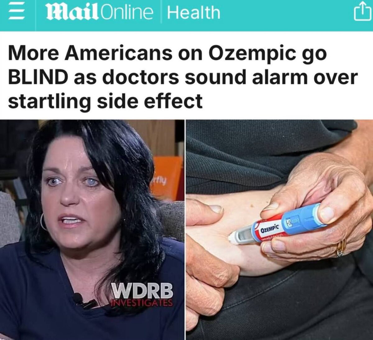 💉 Ozempic, Wegovy, Mounjaro и другие препараты на основе семаглутида стали настоящим хитом среди худеющих. Их принимают миллионы! В 2023 году только в США более 5 млн человек получили рецепт на Ozempic, а мировой рынок этих препаратов оценивается в более $10 млрд. Но вместе с волной популярности растёт и количество тревожных сигналов. 📢 Пациенты, принимающие Ozempic, сообщают о внезапной потере зрения! ⚠️ Реальные истории: 👁 Женщина, использовавшая Ozempic для контроля диабета, проснулась однажды утром и полностью ослепла на один глаз. Через несколько недель зрение исчезло и на другом. 👁 Другая пациентка после года приёма препарата почувствовала, что видит «тень» на глазу – но без боли. Через некоторое время она ослепла на этот глаз. Врачи обнаружили, что её кровеносные сосуды в сетчатке были разрушены. 💡 Как это работает? Учёные считают, что быстрое снижение уровня сахара в крови под воздействием семаглутида может приводить к повреждению мелких кровеносных сосудов, особенно в гл