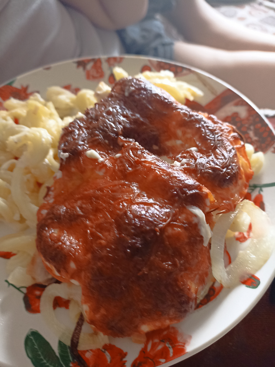 Здравствуйте уважаемые читатели!! Сегодня предлагаю вам приготовить мясо по французски. Очень много различных рецептов есть в просторах интернета. Я вам расскажу свой рецепт, который нравится мне, которым я пользуюсь в приготовлении. Сразу скажу картошки в нём нет! Картошку готовим отдельно, на гарнир, в том виде, который вас устраивает. Итак переходим к процессу приготовления. Ингредиенты: Мясо свинина Помидоры 3 шт Лук 3 шт Майонез Сыр На противень выкладываем мясо, предварительно отбитое. Следующий шаг соль специи Лук предварительно нарезан, выкладываем его на мясо. Теперь выкладываем помидоры на лук Красота получается) Теперь майонез украсит наше мясо Последний штрих сыр, его сыпем много не жалеем Красоту из духовки не сфотографировала, вспомнила когда всём положила на пробу. Мясо запекалось 30 минут в духовке. Надеюсь мой рецепт вам понравится! ! Приятного аппетита! !