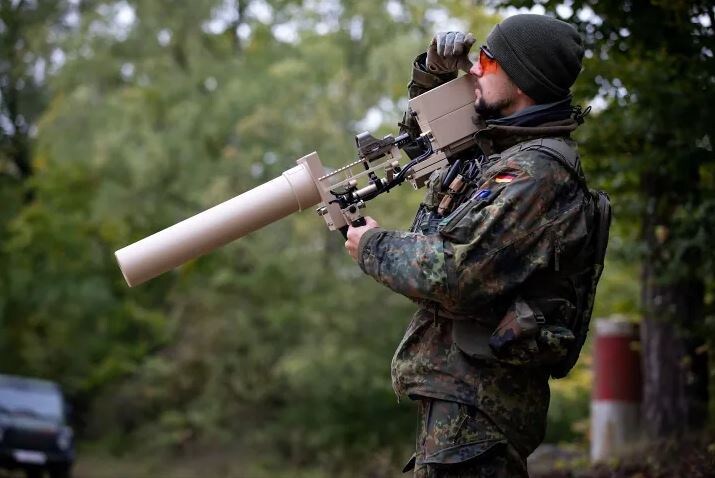 Выше вы видите немецкого солдата, управляющего специальным устройством для борьбы с дронами во время учений в Объединенном многонациональном центре готовности, Хоэнфельс, Германия, 2024 год. Это необычно выглядящее «устройство» — «плечевое противодроновое ружье» под названием HP47 от германского производителя HP Marketing & Consulting Wüst GmbH. Устройство оснащено коллиматорным прицелом от Holosun.