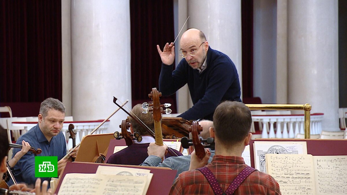 В Большом зале петербургской филармонии оркестр репетирует особый концерт. На пюпитрах пожелтевшие листы партитур времен войны. Написанная Мясковским и впервые исполненная в 1943 году музыка пронизана переживаниями страшного времени. Тот исторической концерт сегодня решили повторить.