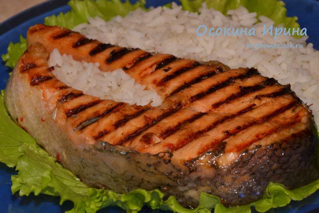 За что люблю рыбку, так это за то, что готовится быстро, а вкусная безапелляционно. В миске смешала 2 ст.л. сладкого соуса чили, 1 ст.л. лимонного сока и 1 ст.л. оливкового масла и подвзбила венчиком. 2 стейка сёмги посолила, сложила в миску с соусом, обваляла со всех сторон и оставила на пару часов подмариноваться, а затем пожарила до готовности на сковороде гриль, сбрызнутой оливковым маслом и подала с рисом. Быстро, просто и ооочень вкусно) Приятного аппетита