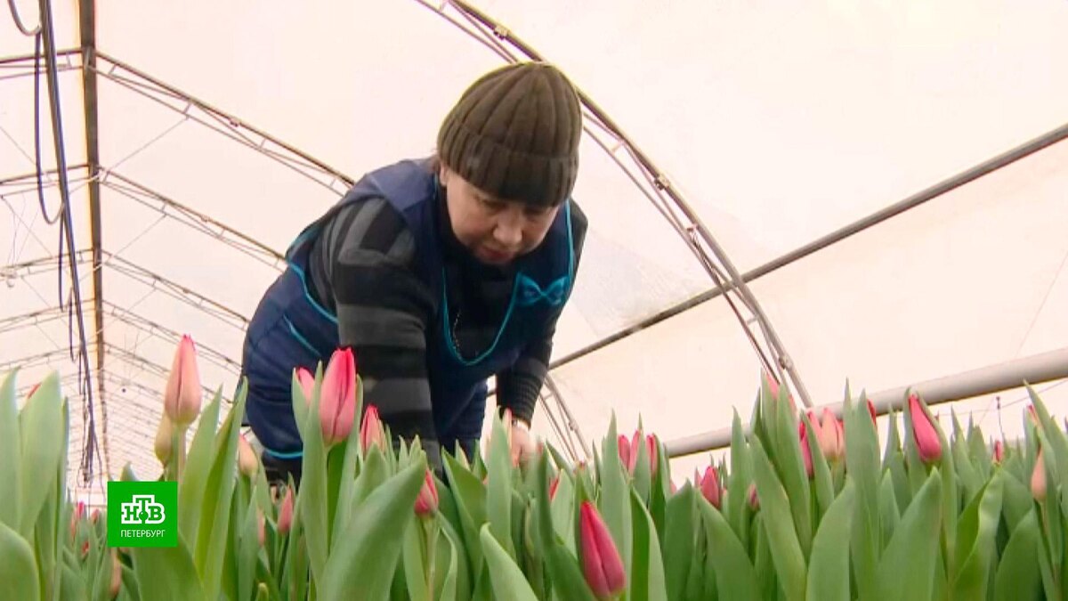 [ Смотреть видео на сайте НТВ ] В одном из крупнейших на северо-западе России тепличном комплексе в городе Тельмана пробиваются ростки импортозамещения. Сейчас там вовсю срезают цветы к 8 Марта. Королевы цветов только прорастают, а главный символ первого весеннего праздника уже умыт и наряжен к выходу. И несмотря на то, что некоторые представители еще зеленые, их уже снимают. Снять тюльпан на языке флористов значит вытащить цветок из земли вместе с луковицей. Когда снимать, определяют по бутону. Экспериментальные сорта тюльпанов в тепличном комплексе стараются добавлять каждый год. На этот раз взяли белые корончатые, их лепестки как бы образуют королевский венец. Но вечная классика здесь — желтые тюльпаны. Вестники не только разлуки, но и богатства. Этот сорт самый известный, самый неприхотливый и самый стабильный в выращивании. Анна Никифорова, заместитель главного агронома тепличного комплекса «Племхоз имени Тельмана»: «Самое главное — это невысокая температура воздуха в помещении. Ч