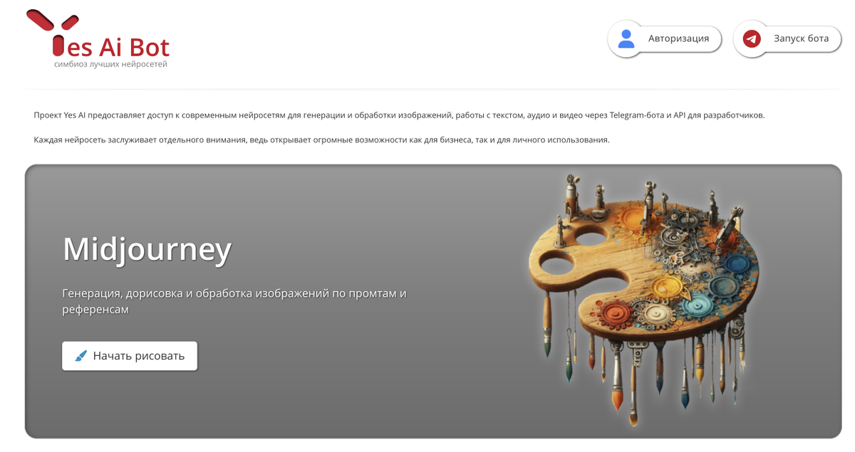 Проект YES AI представляет собой масштабную платформу, реализованную преимущественно через Telegram-бот @yes_ai_bot, позволяющую пользователям взаимодействовать с несколькими десятками современных нейросетей. Основная цель проекта – обеспечить удобный и интуитивно понятный доступ к возможностям искусственного интеллекта максимально широкой аудитории. Подготовка к запуску проекта YES AI началась в конце 2022 года командой разработчиков из разных стран под руководством основателей — Андрея Шелагина и Ильи Качмашева. Первоначально были запущены простые Telegram-боты с базовыми функциями нейросетей, ставшие основой полноценного бота YES AI. Сам официальный запуск Telegram-бота @yes_ai_bot состоялся в середине 2023 года, и на тот момент он поддерживал взаимодействие только с двумя нейросетями — Chat GPT 3.5 и Stable Diffusion 1.5. В течение 2023 года проект активно развивался — была запущена бесплатная образовательная программа, позволяющая каждому желающему получить знания по работе с нейр