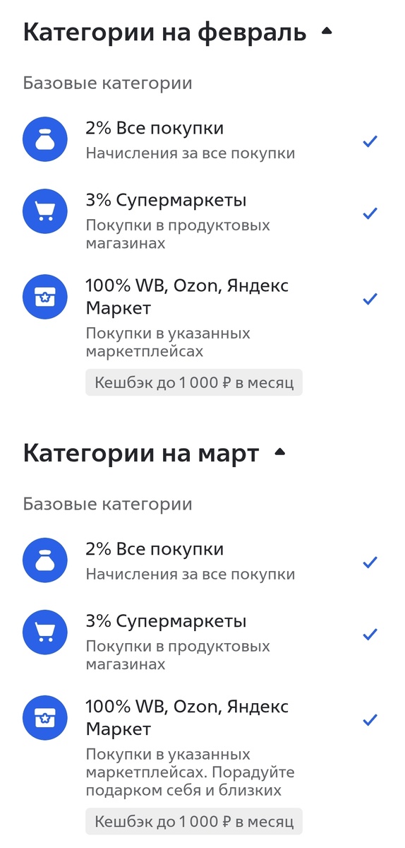 Решилась я всё же на седьмую дебетовая карту. Всем привет! 🤞 На этот раз банк ВТБ. Знакомство с этим банком мне понравилось!) А как может не понравится, когда в первый день мне на карту прыгнуло 1000 рублей. ВТБ в первые месяцы даёт 100 % кэшбека на маркетплейс Озон, Wildberries и Яндекс Маркет. Не знаю конечно будет ли такое дальше, навряд ли... Это как приветственный кэшбека... Но пока на два месяца вот так... И это здорово! Я вчера 27.02 получила карту и сразу же купила сертификат на Озоне и вот уже 1000 рублей сразу же и прилетело на мой баланс) Жаль, что можно только 1000 рублей кэшбека по маркетплейсам получить... Ну и 3 % на супермаркеты и 2 % на все покупки тоже не плохо. До этого у меня такого не было ни разу. Так что, девочки, всем советую заиметь такую дебетовую карту ВТБ. И вам, и мне начислят 1000 рублей. Ну одни плюсы всем! Вы должны будете совершить покупки на 5 тысяч в течении 30 дней. Ну что такое сейчас 5 тысяч при наших то ценах?!) В общем, пока вижу тол
